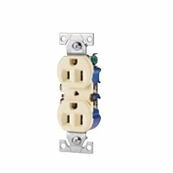 Eaton Wiring Devices 270V Straight Blade Duplex Receptacle, 125 VAC, 15 A, 2 Poles, 3 Wires, Ivory